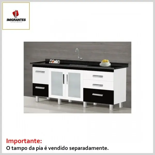 Gabinete de Cozinha MDP s/Tampo Vitória Preto - Largura 1.5m (L146 x P51 x A83cm) - Imigrantes