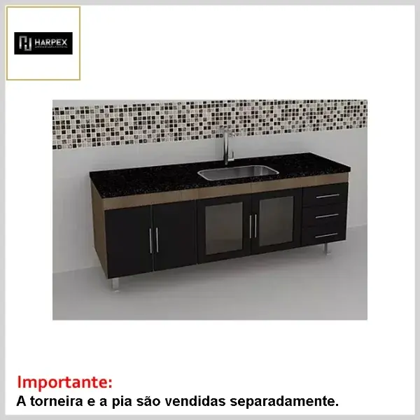 Gabinete de Cozinha Mdp Veneza 1800 Carvalho e Preto (s/Tampo) - Largura do Gabinete: 1.75 m - Harpex