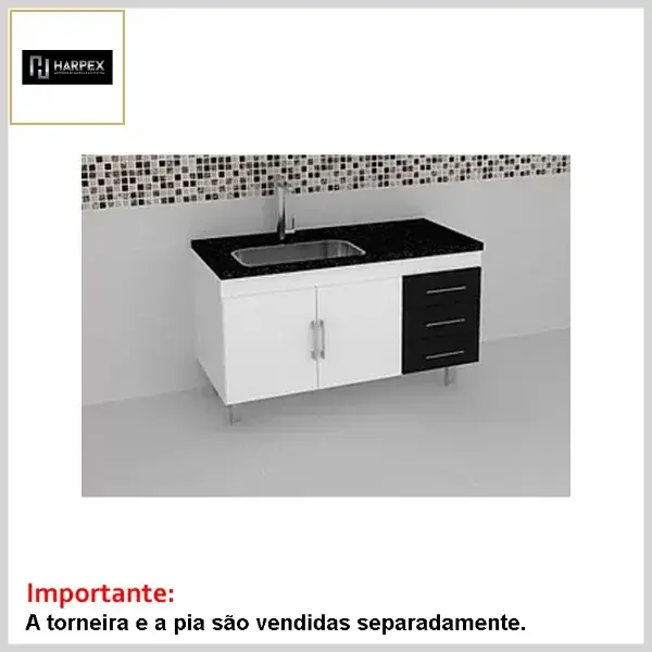 Gabinete de Cozinha Mdp Verona 1200 Branco e Preto (s/Tampo) - Largura do Gabinete: 1.15 m - Harpex