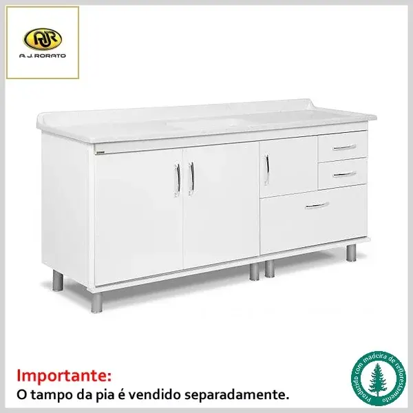 Gabinete de Cozinha Supremo 174.5cm Mdf 5855 3Portas+3Gavetas s/Tampo - Branco - AJ Rorato