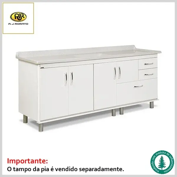 Gabinete de Cozinha Supremo 195.1cm Mdf 5856 4Portas+3Gavetas s/Tampo - Branco - AJ Rorato