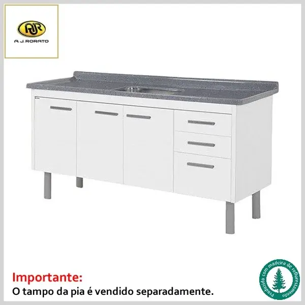 Gabinete de Cozinha Valenza 154.2cm Mdp 5604 3Portas+3Gavetas s/Tampo - Branco - AJ Rorato