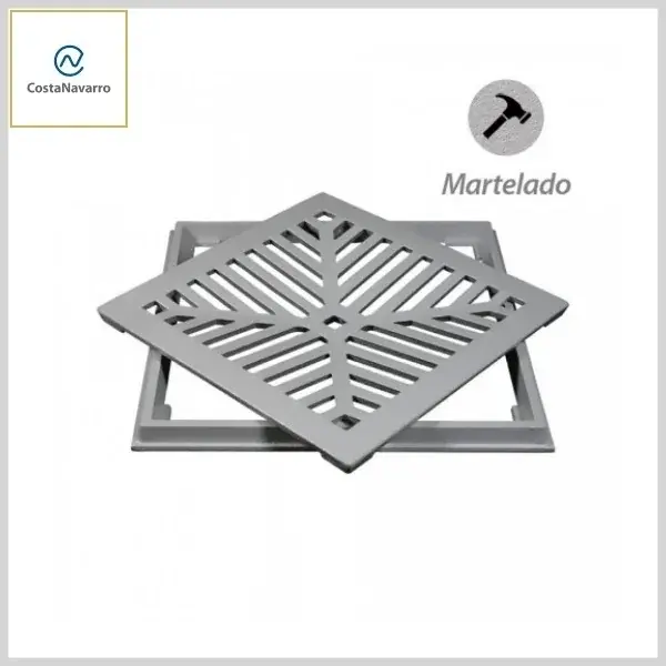 Grelha +Porta Grelha CJGFC Fixa Côncava Alumínio Martelado - Linha Leve, 15x15 cm - Costa Navarro