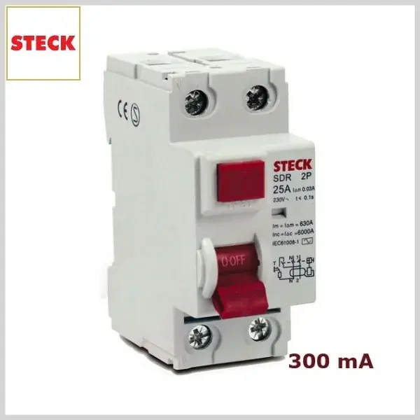 Interruptor Diferencial SDR Bipolar 300mA x 6KA x 230V - 25 Ampéres - Steck