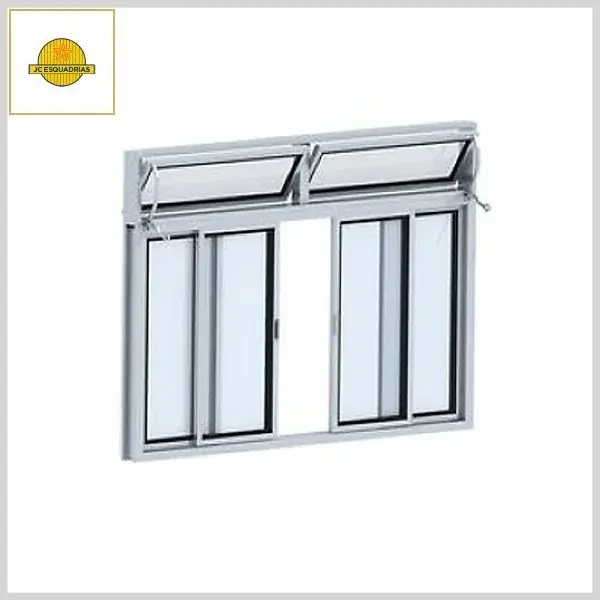 Janela de Alumínio Modular 4Fls c/Vidro+Bandeira Bat.50mm, Brilhante - 1.00m (alt) x 1.00m (larg) - JC Esquadrias