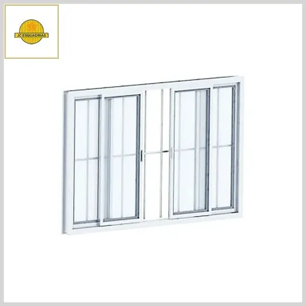 Janela de Alumínio Modular 4Fls c/Vidro+Grade Bat.50mm, Branco - 1.00m (alt) x 1.00m (larg) - JC Esquadrias