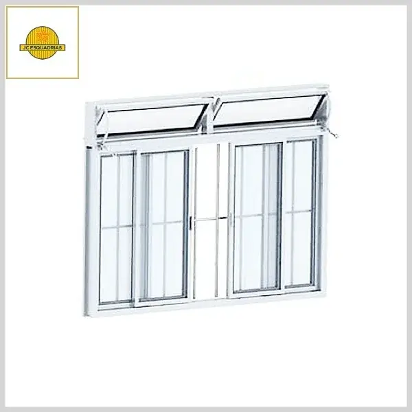 Janela de Alumínio Modular 4Fls c/Vidro+Grade+Band Bat.50mm, Branco - 1.00m (alt) x 1.00m (larg) - JC Esquadrias