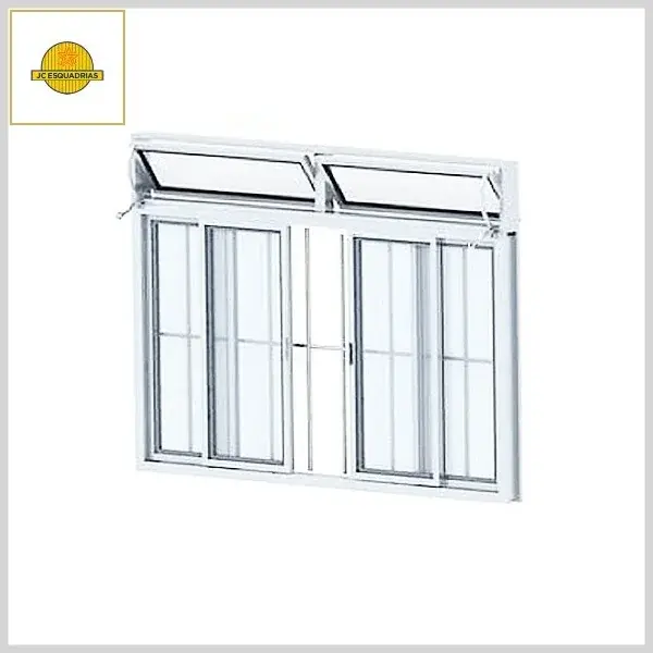 Janela de Alumínio Predial 4Fls c/Vidro+Grade+Band Bat.50mm, Branco - 1.00m (alt) x 1.00m (larg) - JC Esquadrias