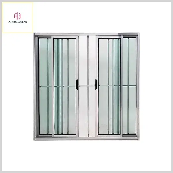 Janela de Correr 4Folhas c/Grade Alumínio L20 Brilhante - Vidro Cristal, Medidas: 100(A) x 100(L) - AJ Esquadrias