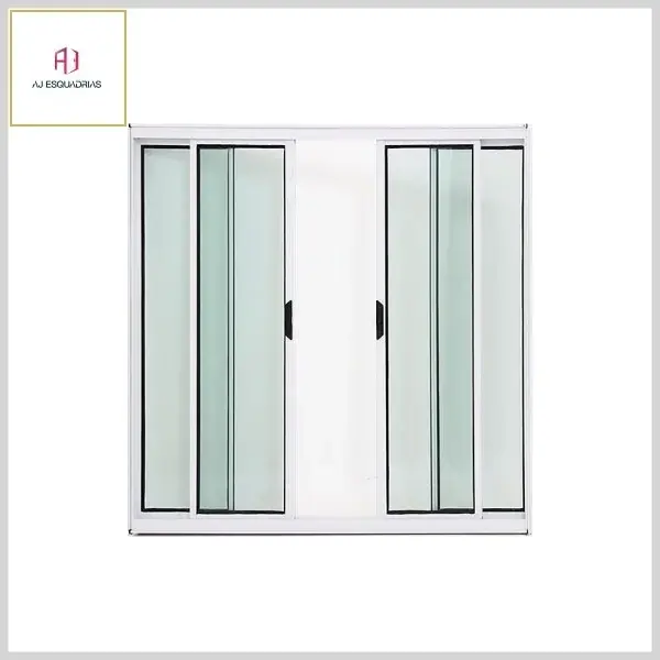 Janela de Correr 4Folhas s/Grade Alumínio L20 Branco - Vidro Cristal, Medidas: 100(A) x 100(L) - AJ Esquadrias