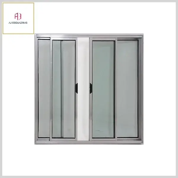 Janela de Correr 4Folhas s/Grade Alumínio L20 Brilhante - Vidro Cristal, Medidas: 100(A) x 100(L) - AJ Esquadrias