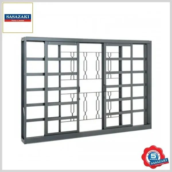 Janela de Correr Belfort, Aço JCBSDGE 4 Fls s/Band Quadriculada c/Grade Elo - Medidas: 100[A] x 120[L] x 08[P] cm - Sasazaki