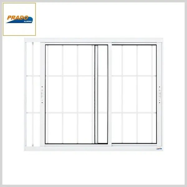Janela de Correr Boldie Alumínio Branco 2Fls c/Vidro+Grade - 1.00 x 1.20 x 8.2cm (ab.lat) - Prado