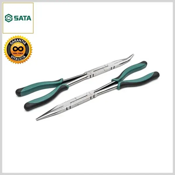 Jogo de Alicates (2pçs: Bico Meia-Cana Extra-Longo) Cromo Vanádio c/Cabo Emborrachado - Caixa c/2 peças - Sata