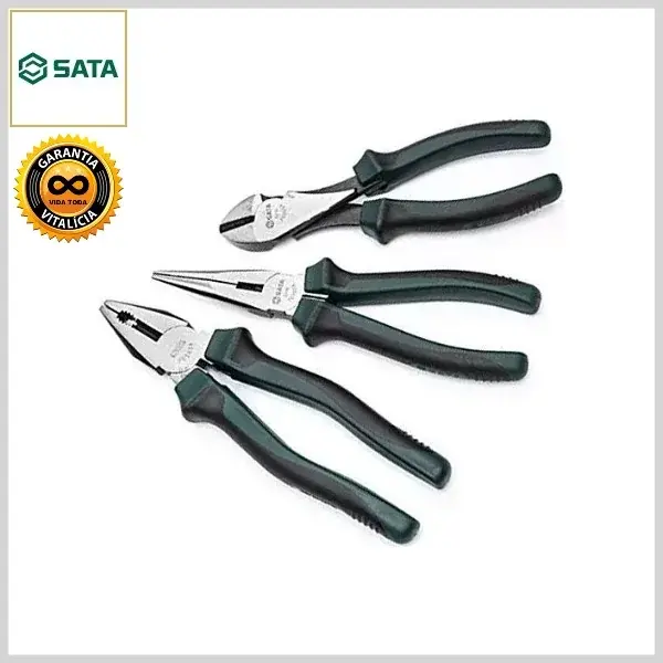 Jogo de Alicates (3pçs: Bico/Corte/Universal) Cromo Níquel Isolado c/Cabo Emborrachado - Caixa c/3 peças - Sata