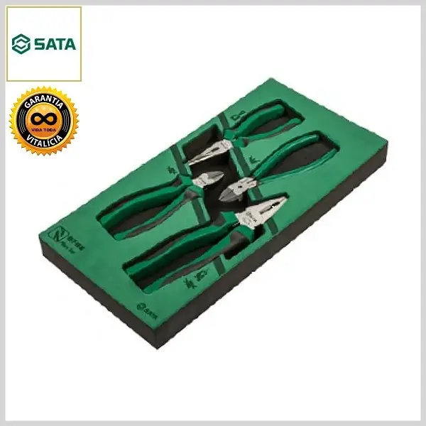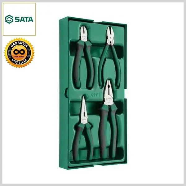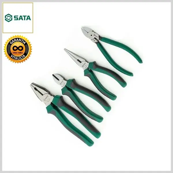 Jogo de Alicates (4pçs: Bico/Corte/Universal) Cromo Níquel c/Cabo Antideslizante - Caixa c/4 peças - Sata