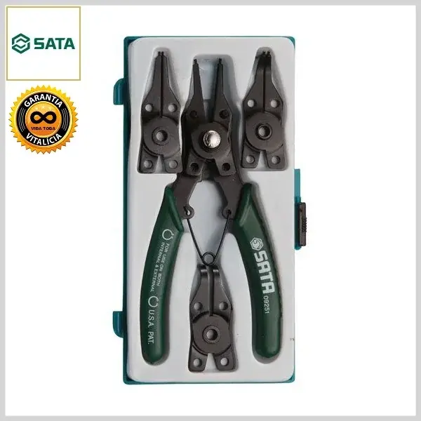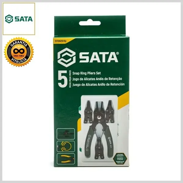 Jogo de Alicates (5pçs: Alicate_Anel/4 Cabeças Int_Ext) Cromo Vanádio c/Cabo Emborrachado - Estojo c/ 5 peças - Sata