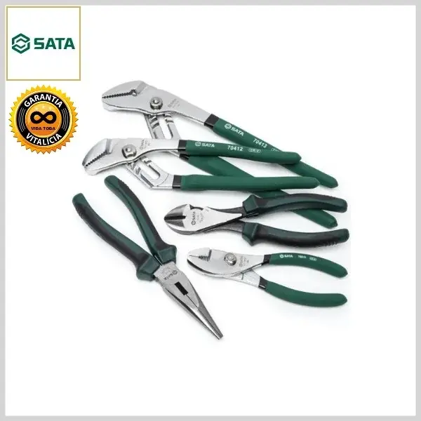 Jogo de Alicates (9pçs: Bomba dÁgua/Bico/Corte/Junta) Cromo Níquel c/Cabo Antideslizante - Caixa c/9 peças - Sata