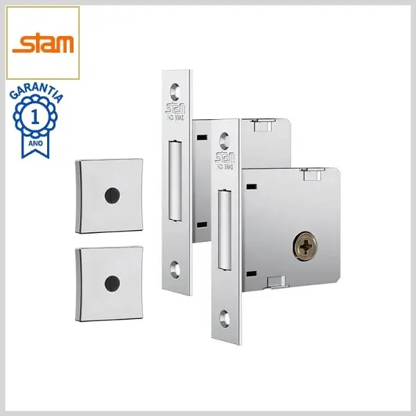 Kit 2Travas Auxiliares Classic 1010 Broca40mm Chave Tetra s/Maçaneta c/Roseta Zamac Quadrada - Cromado - Stam