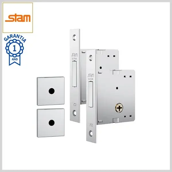 Kit 2Travas Auxiliares Standard 1002 Broca40mm Chave Tetra s/Maçaneta c/Roseta Inox Quadrada1 - Cromado - Stam