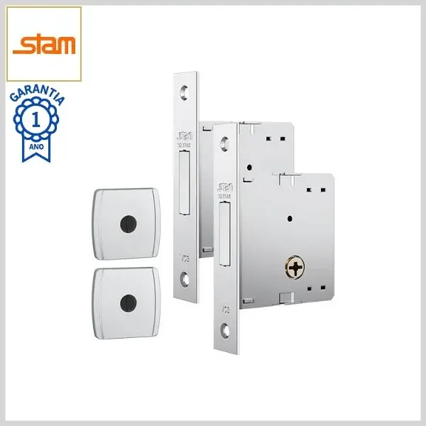 Kit 2Travas Auxiliares Standard 1002 Broca40mm Chave Tetra s/Maçaneta c/Roseta Inox Quadrada - Cromado - Stam