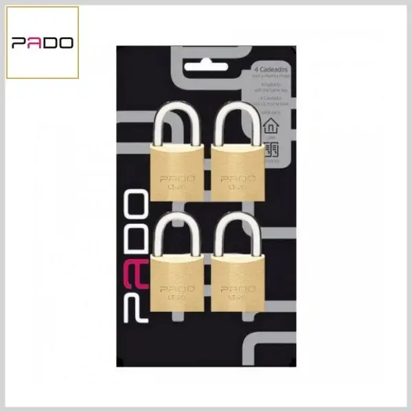 Kit 4 Cadeados Tradicionais 20mm, c/4 Chaves Iguais - Blister c/4 peças - Pado
