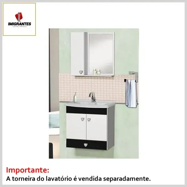 Kit Banheiro Toucador +Espelheira 0.40 Bari Preto - Larg. 40cm (41.5ᴸx30.5ᴾx51.0ᴬcm) - Imigrantes