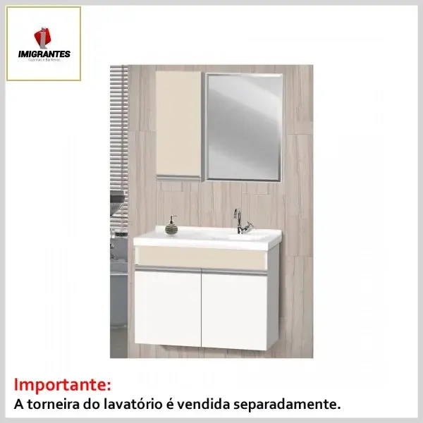 Kit Banheiro Toucador +Espelheira 0.60 Asteca Areia - Larg. 60cm (61.0ᴸx30.0ᴾx41.0ᴬcm) - Imigrantes