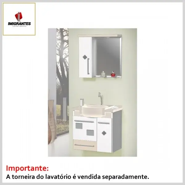 Kit Banheiro Toucador +Espelheira 0.60 Creative Areia - Larg. 60cm (61.0ᴸx30.0ᴾx56.0ᴬcm) - Imigrantes