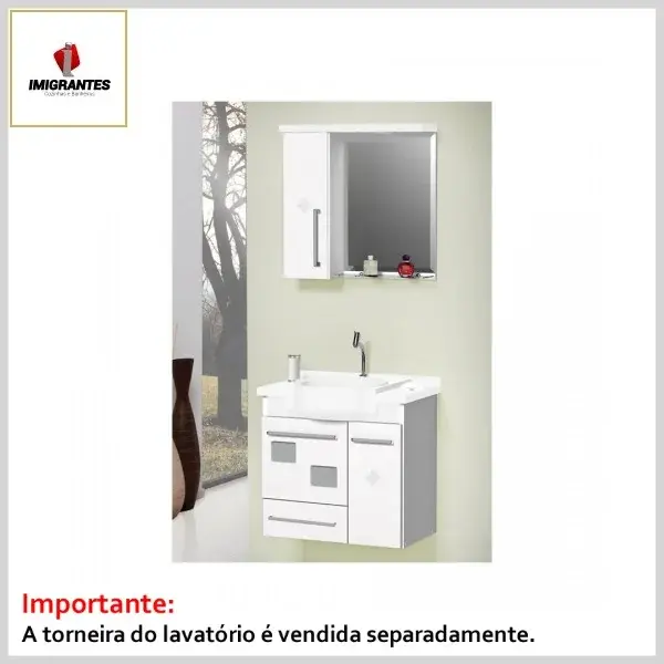 Kit Banheiro Toucador +Espelheira 0.60 Creative Branco - Larg. 60cm (61.0ᴸx30.0ᴾx56.0ᴬcm) - Imigrantes