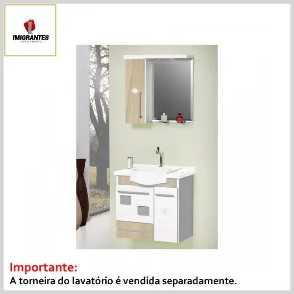 Kit Banheiro Toucador +Espelheira 0.60 Creative Cilliegio - Larg. 60cm (61.0ᴸx30.0ᴾx56.0ᴬcm) - Imigrantes