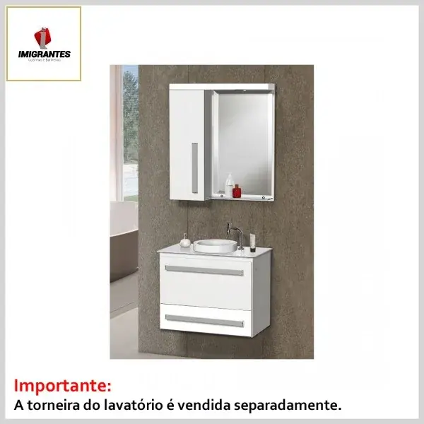 Kit Banheiro Toucador +Espelheira 0.60 Elegance Branco - Larg. 60cm (58.5ᴸx41.0ᴾx54.0ᴬcm) - Imigrantes