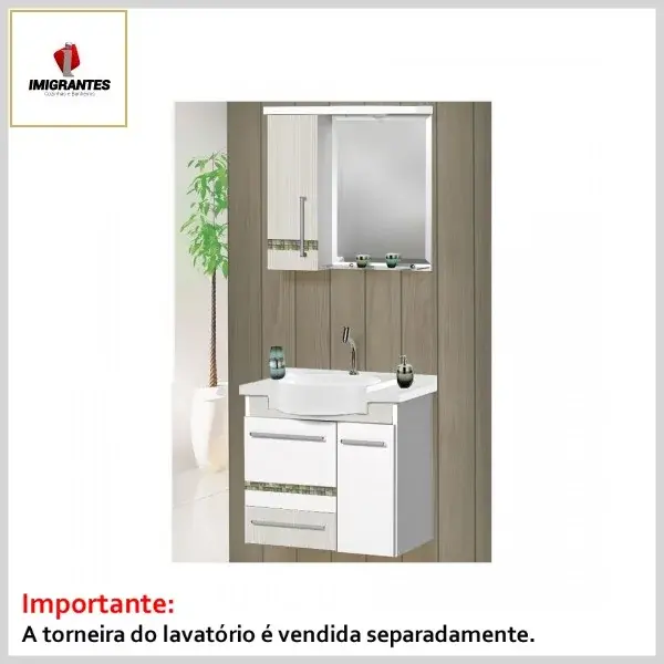 Kit Banheiro Toucador +Espelheira 0.60 Firenze Cilliegio - Larg. 60cm (61.0ᴸx30.0ᴾx56.0ᴬcm) - Imigrantes