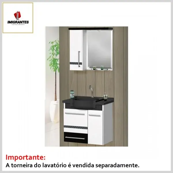 Kit Banheiro Toucador +Espelheira 0.60 Firenze Preto - Larg. 60cm (61.0ᴸx30.0ᴾx56.0ᴬcm) - Imigrantes