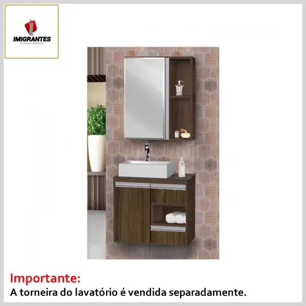 Kit Banheiro Toucador +Espelheira 0.60 Gênova Larnaca - Larg. 60cm (57.5ᴸx38.5ᴾx58.0ᴬcm) - Imigrantes