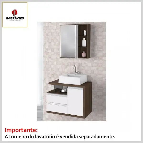 Kit Banheiro Toucador +Espelheira 0.60 Gold Branco - Larg. 60cm (61.0ᴸx40.0ᴾx50.0ᴬcm) - Imigrantes