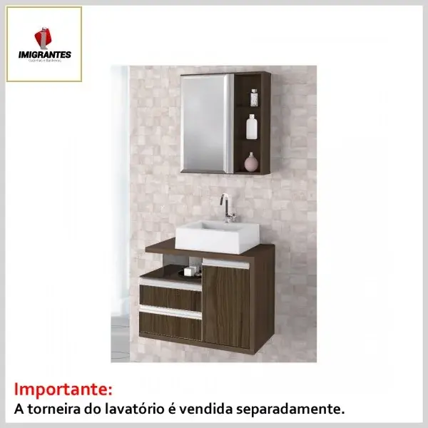 Kit Banheiro Toucador +Espelheira 0.60 Gold Larnaca - Larg. 60cm (61.0ᴸx40.0ᴾx50.0ᴬcm) - Imigrantes