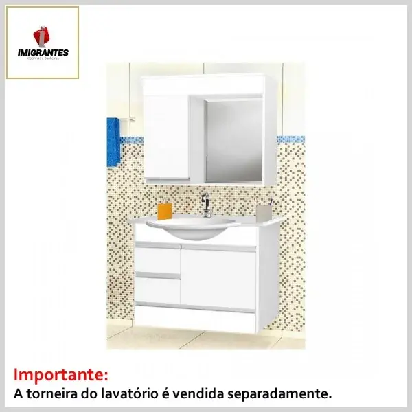 Kit Banheiro Toucador +Espelheira 0.60 Lisboa Branco - Larg. 60cm (61.0ᴸx30.0ᴾx56.0ᴬcm) - Imigrantes