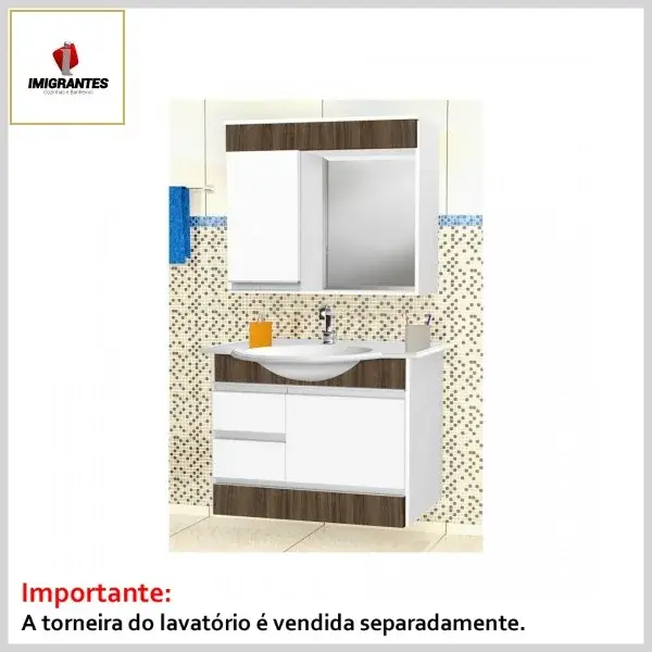 Kit Banheiro Toucador +Espelheira 0.60 Lisboa Larnaca - Larg. 60cm (61.0ᴸx30.0ᴾx56.0ᴬcm) - Imigrantes