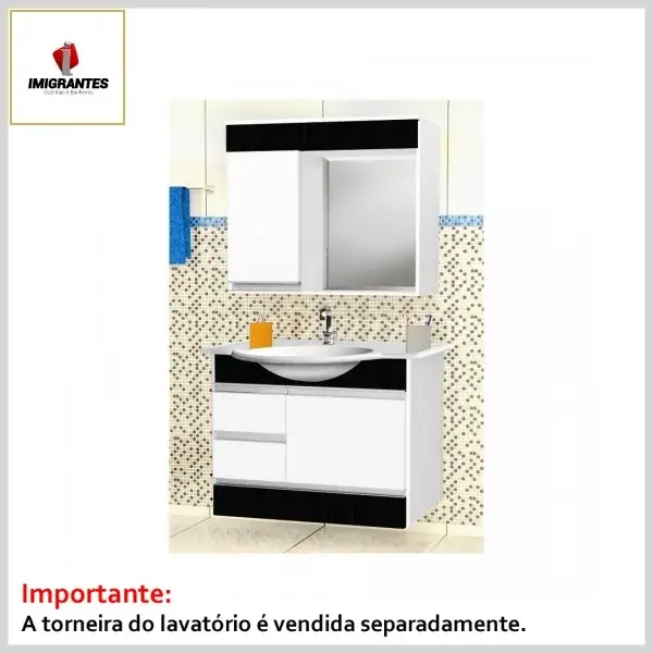 Kit Banheiro Toucador +Espelheira 0.60 Lisboa Preto - Larg. 60cm (61.0ᴸx30.0ᴾx56.0ᴬcm) - Imigrantes