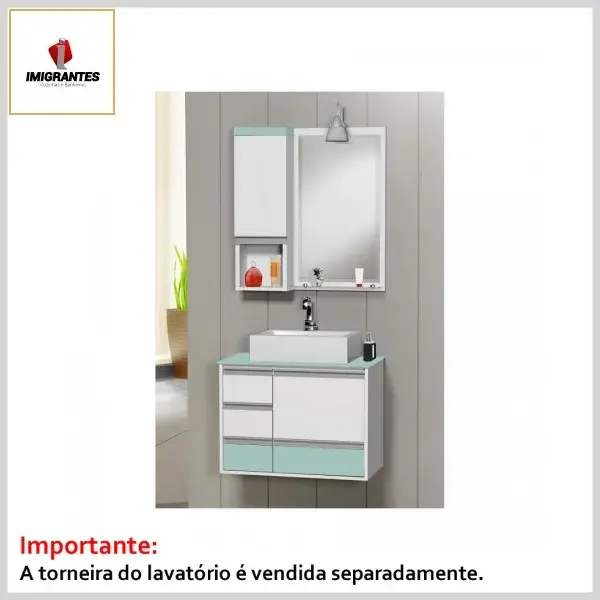 Kit Banheiro Toucador +Espelheira 0.60 Mônaco Acqua - Larg. 60cm (58.5ᴸx41.0ᴾx47.0ᴬcm) - Imigrantes