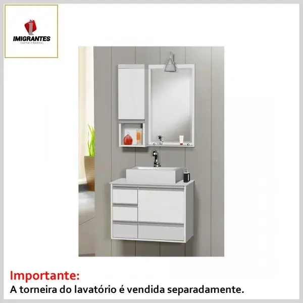 Kit Banheiro Toucador +Espelheira 0.60 Mônaco Cinza - Larg. 60cm (58.5ᴸx41.0ᴾx47.0ᴬcm) - Imigrantes