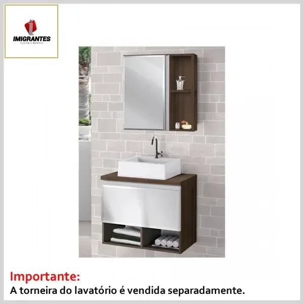 Kit Banheiro Toucador +Espelheira 0.60 Premium Espelhado - Larg. 60cm (61.0ᴸx42.0ᴾx56.5ᴬcm) - Imigrantes