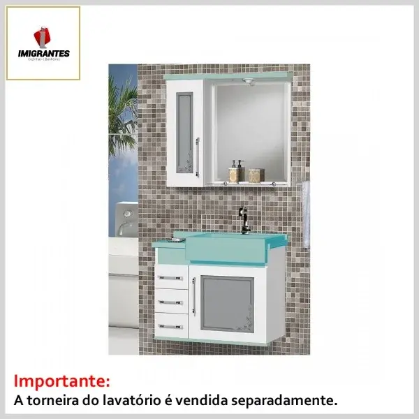 Kit Banheiro Toucador +Espelheira 0.60 Rekinte Acqua - Larg. 60cm (59.5ᴸx32.0ᴾx56.0ᴬcm) - Imigrantes