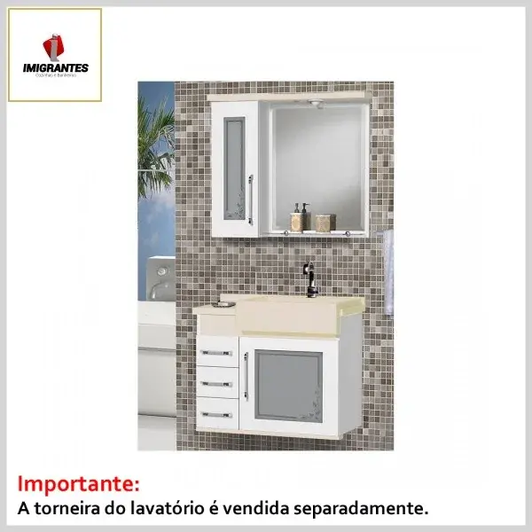 Kit Banheiro Toucador +Espelheira 0.60 Rekinte Areia - Larg. 60cm (59.5ᴸx32.0ᴾx56.0ᴬcm) - Imigrantes