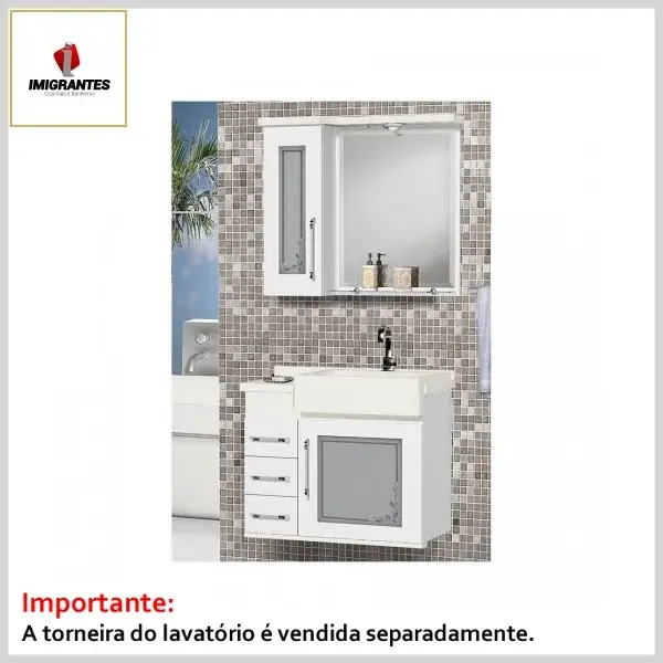 Kit Banheiro Toucador +Espelheira 0.60 Rekinte Branco - Larg. 60cm (59.5ᴸx32.0ᴾx56.0ᴬcm) - Imigrantes