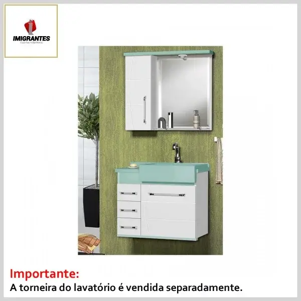Kit Banheiro Toucador +Espelheira 0.60 Stilo Acqua - Larg. 60cm (59.5ᴸx32.0ᴾx56.0ᴬcm) - Imigrantes