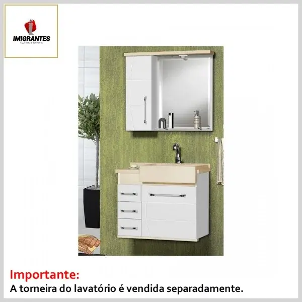 Kit Banheiro Toucador +Espelheira 0.60 Stilo Areia - Larg. 60cm (59.5ᴸx32.0ᴾx56.0ᴬcm) - Imigrantes