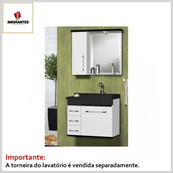 Kit Banheiro Toucador +Espelheira 0.60 Stilo Preto - Larg. 60cm (59.5ᴸx32.0ᴾx56.0ᴬcm) - Imigrantes