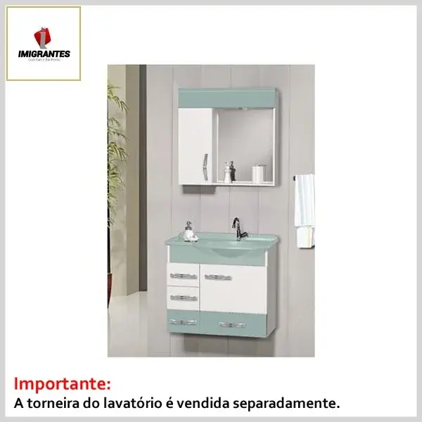 Kit Banheiro Toucador +Espelheira 0.60 Turim Acqua - Larg. 60cm (61.0ᴸx30.0ᴾx56.0ᴬcm) - Imigrantes